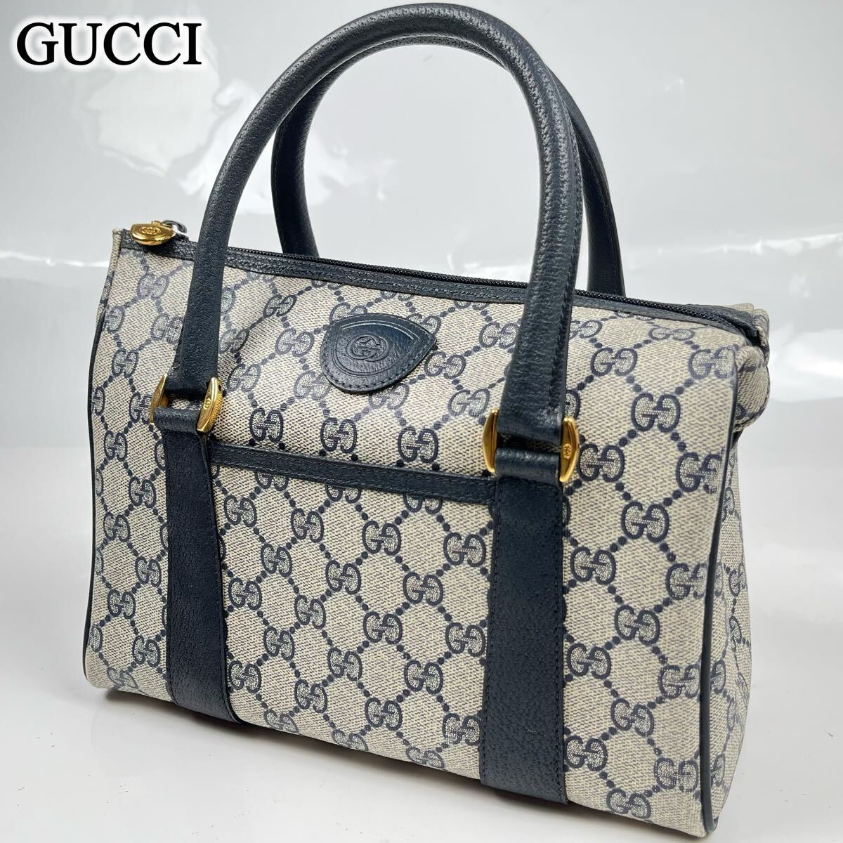 - 1円1スタ GUCCI グッチ ハンドバッグ ミニボストンバッグ オールドグッチ レザー ボストンバッグ PVC GGスプリーム バック手持ち ネイビー