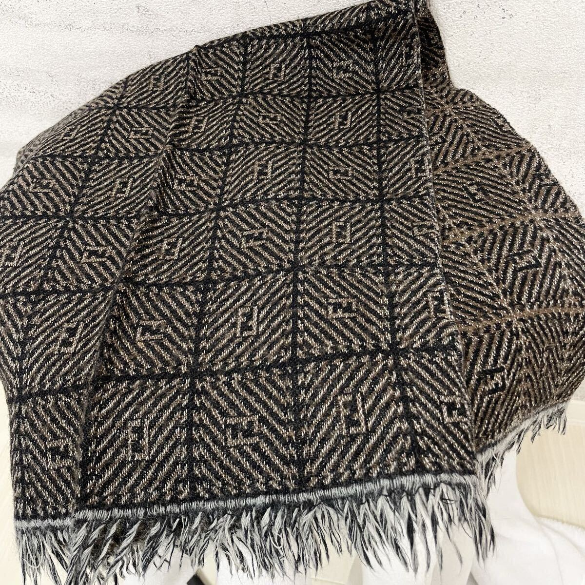 - 【贅沢品の極み】FENDI フェンディ ストール マフラー ズッカ ロゴ 総柄 ウール ブラウン ブラック フリンジ