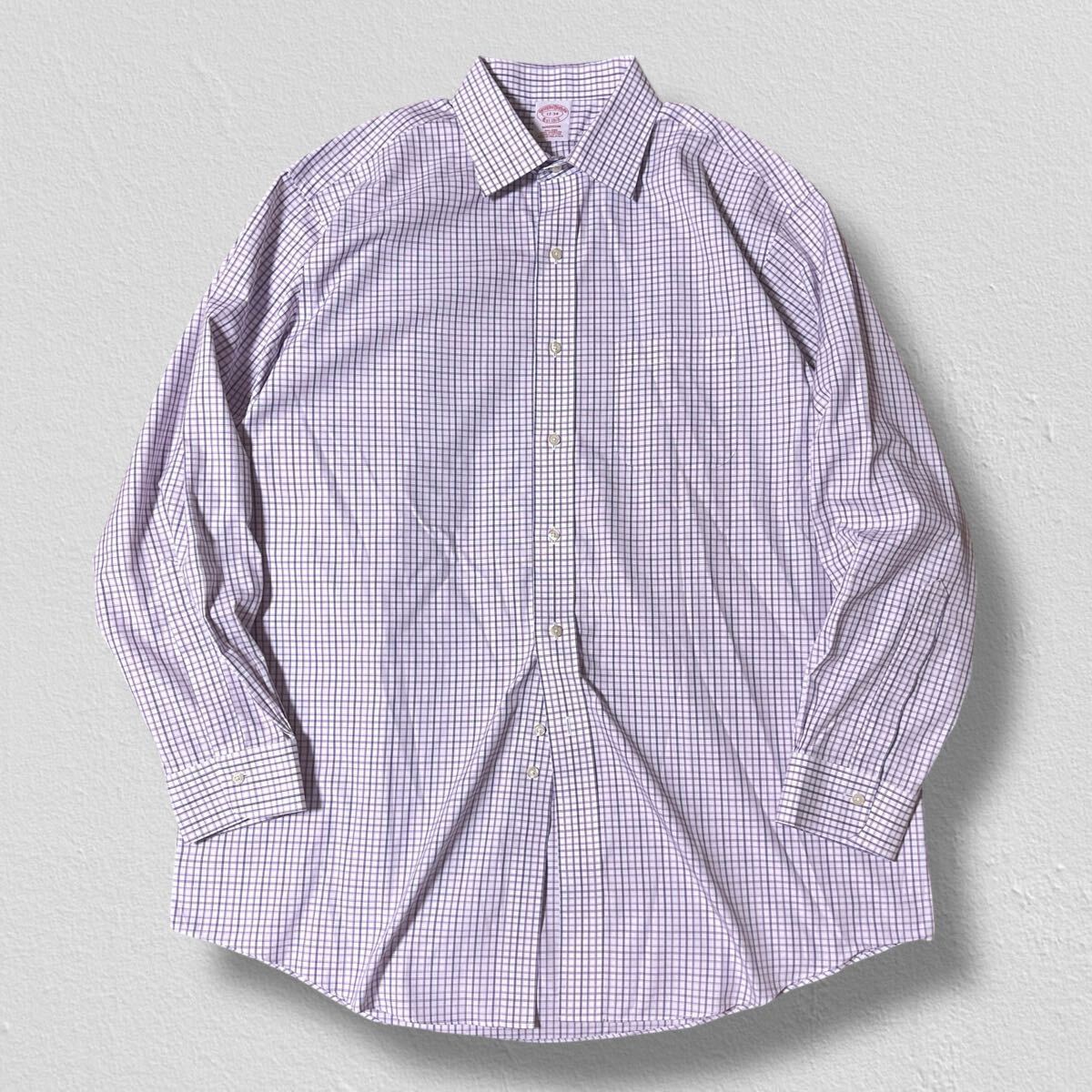 > Brooks Brothers Est.1818 長袖シャツ ラベンダー系チェック柄 17-34 ●洗濯プレス済●ネコポス可● ブルックスブラザーズ 古着/760