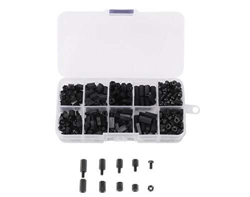 ナイロン製 M3ネジ 六角 スペーサー セット【 10種 300個入 ブラック 】専用ケース付 スタンドオフ オフスペーサー 基盤固定ナイロン製 M3ネジ 六角スペーサー セット 【 10種 300個入 】専用ケース付です。PCB回路基板や機械基盤間など電子基板を重ねて固定する場合などに使用できる六角スペーサーです。様々なサイズの10種類のネジやナット、オス、メススペーサーがセットになっているので作業時に大変便利です。材質は耐久性に優れたナイロンを採用しており、絶縁性、耐油性があり錆びにくく安心してご使用頂けます。また難燃グレードUL94-V2で耐熱性があり、対応温度-20-120℃の範囲でご使用頂けます。金属製と違いショートする心配もございません。専用ケースに入っているので整理、収納、持ち運びにも便利です。PCBボードやFPV、ドローン、RCやArduinoなどの電子基板取付ツールです。DIY、電気工作をされる方に大変おすすめです。是非この機会にお買い求め下さい。※説明書は付属しません。予めご了承ください。