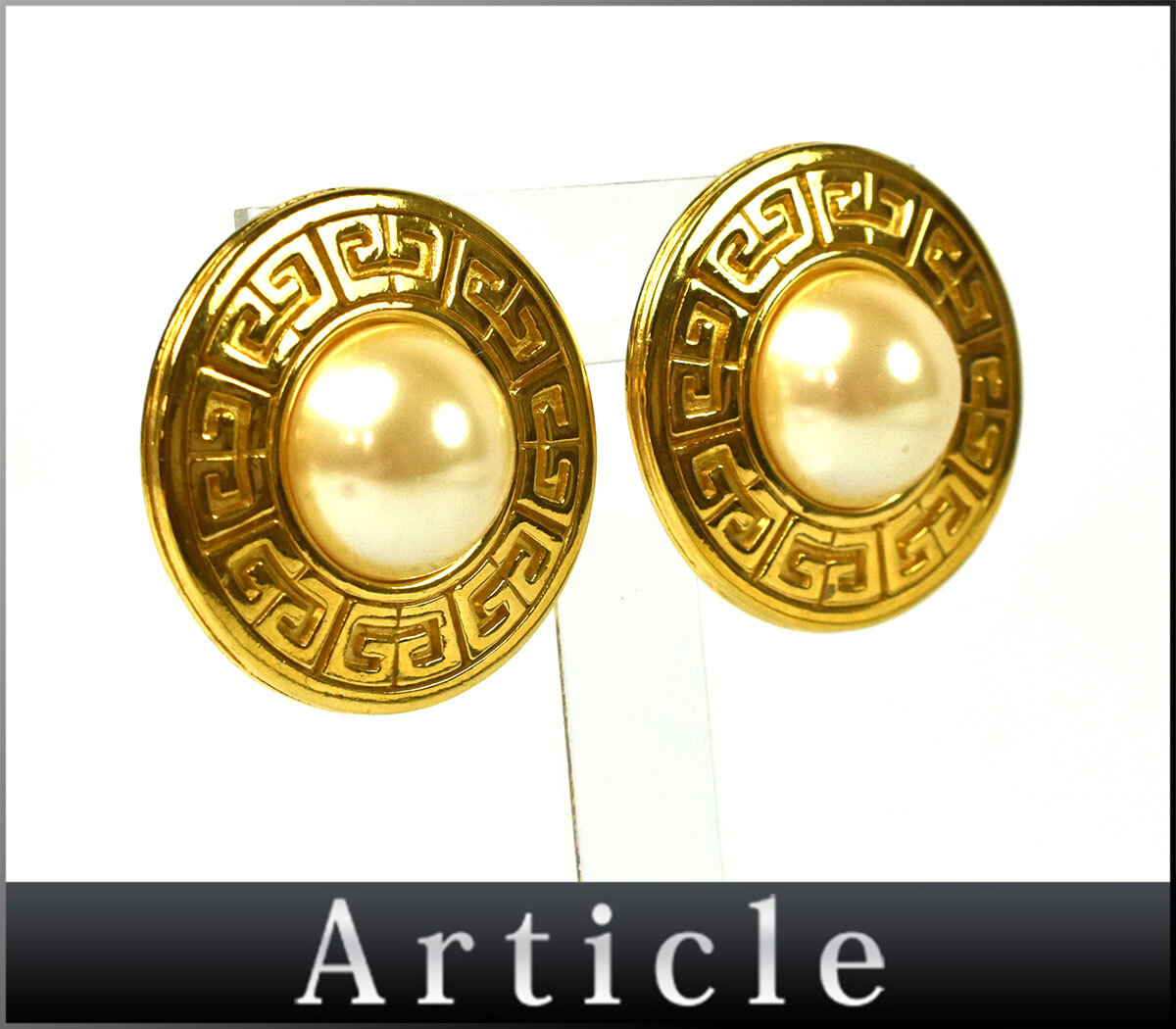 > 238357□ GIVENCHY ジバンシィ ラウンド イヤリング アクセサリー 耳飾り フェイクパール GP アイボリー ゴールド レディース/ E