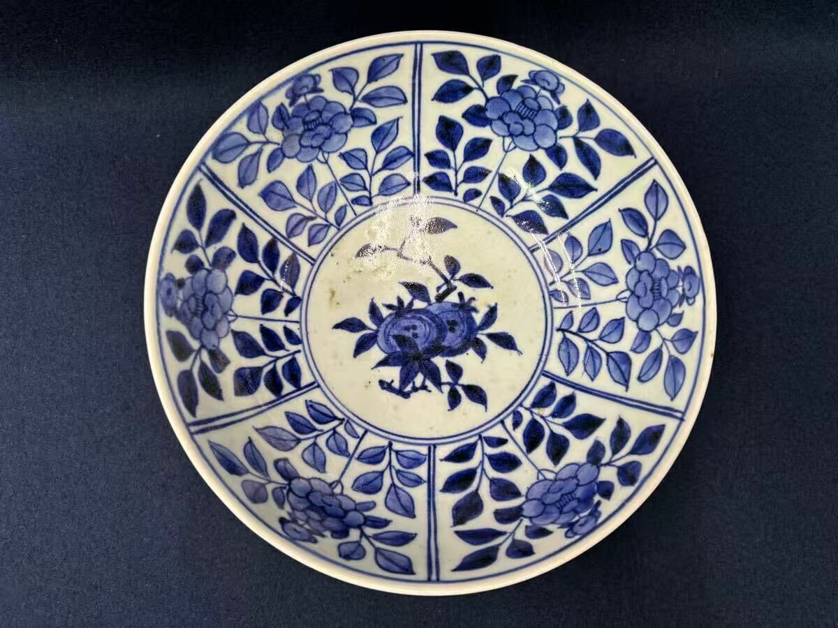 - 唐物 中国古美術 南京古染付 清時代 康熙? 大明成化年製在銘 青花唐草文大碗