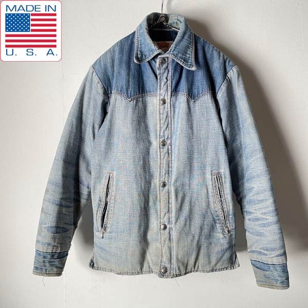 - 希少 70s USA製 Comfy デニム ダウンジャケット S 縦落ち ウエスタン ヨーク切替 ハチノス レア アメリカ製 ビンテージ PV-18-9247ZT