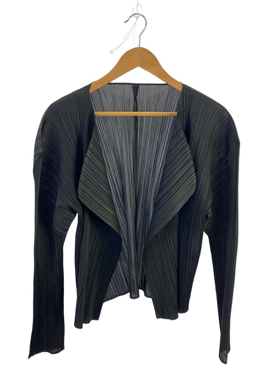 - PLEATS PLEASE ISSEY MIYAKE◆カーディガン(薄手)/3/ポリエステル/BLK/無地/pp04-jd623/袖汚れ