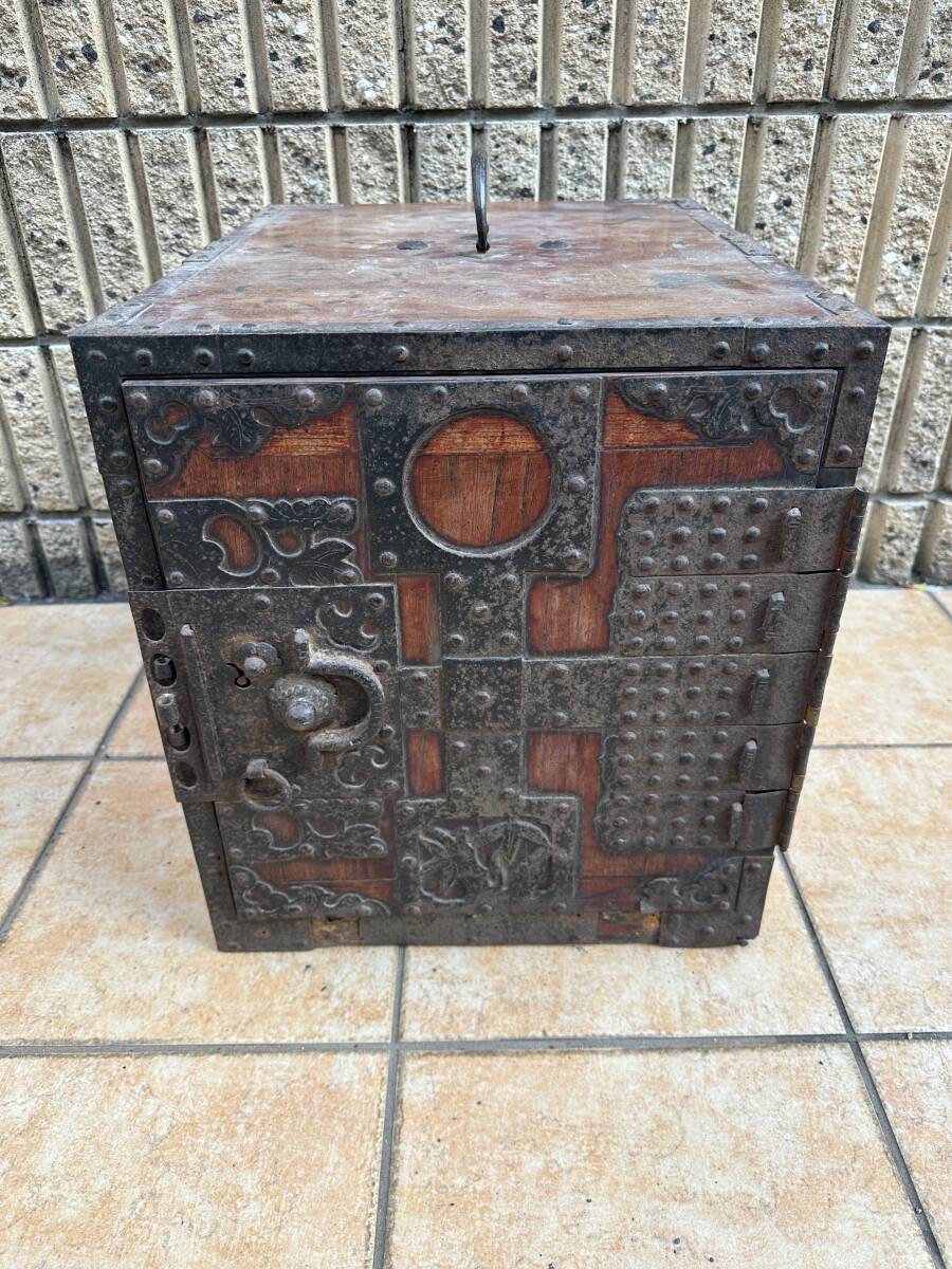 - 時代古鉄金具船箪笥 欅材 金庫 銭函 小箪笥 古民具