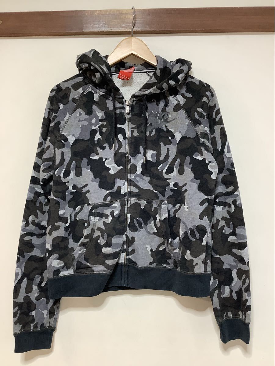 > た1706 NIKE ナイキ ジップアップスウェットパーカー 迷彩 カモフラ M レディース グレー/ブラック 裏パイル ロゴプリント