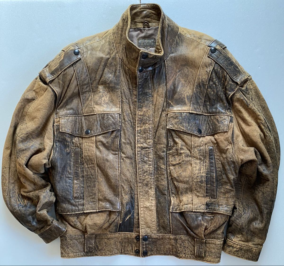 - ビンテージ◆80s Bisonte A-2 ストーンウォッシュ加工 本革 ブラウンレザージャケット フライトジャケット メンズM