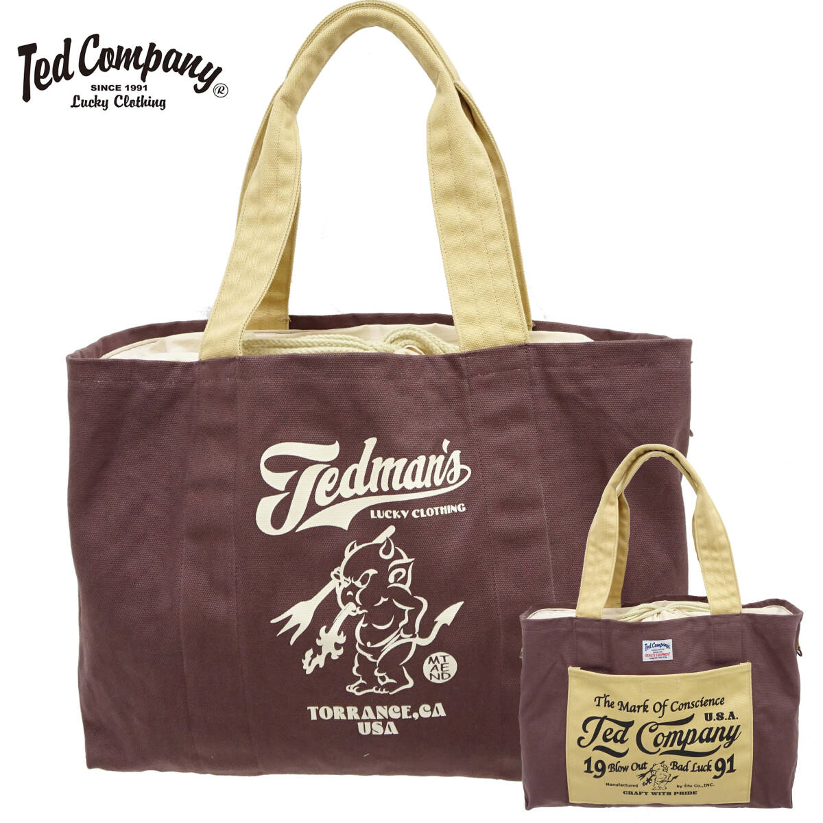 - テッドマン キャンバス トートバッグ TEDMAN ラッキーレッドデビル 巾着開口 鞄 TDBG-1600 エフ商会 ブラウン×ベージュ 新品