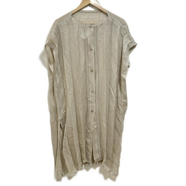 - ミー/イッセイミヤケ me ISSEY MIYAKE カーディガン - ベージュ レディース 半袖/ロング丈/プリーツ トップス