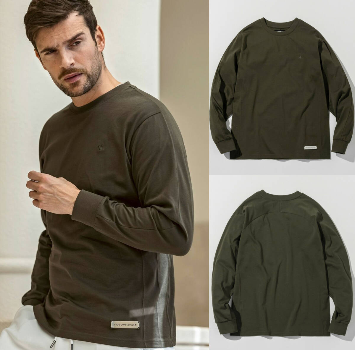 - 25AW◆1PIU1UGUALE3 RELAX◆シルバーロゴプレートロングスリーブTシャツ ロンT◆UST-25093/緑/②◆ウノピゥウノウグァーレトレリラック