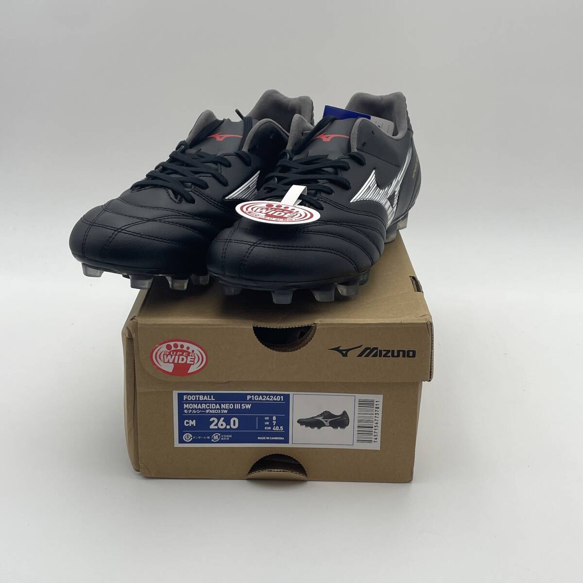 - 新品未使用 ミズノ MIZUNO モナルシーダNEO 3 SW ブラック×ホワイト サッカースパイク p1ga2424-01 26cm RC0280