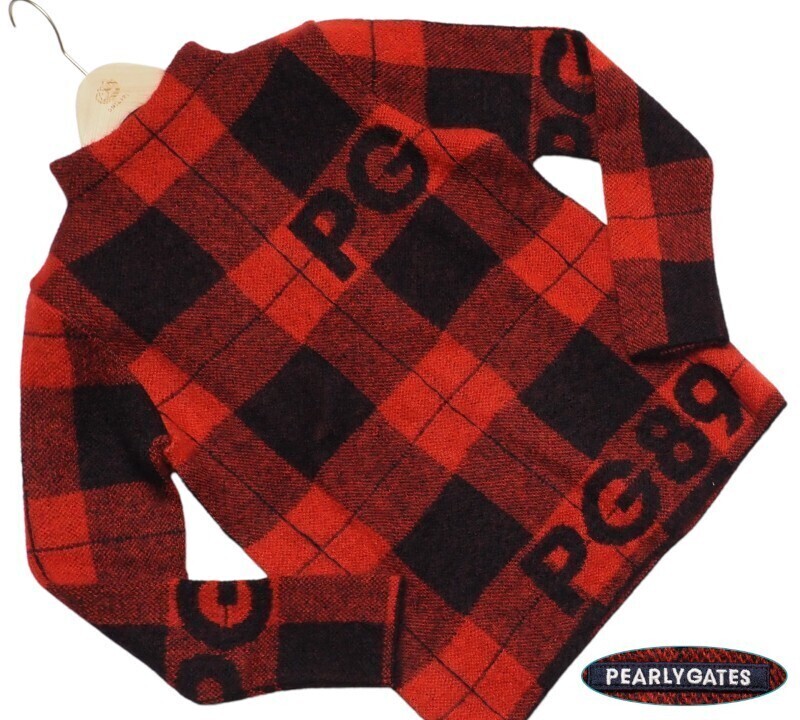 - 新品正規36300円 PEARLY GATES パーリーゲイツ 日本製 モヘア プルオーバー チェック柄 モックネックニット レディース0(S)赤(102) 1270008