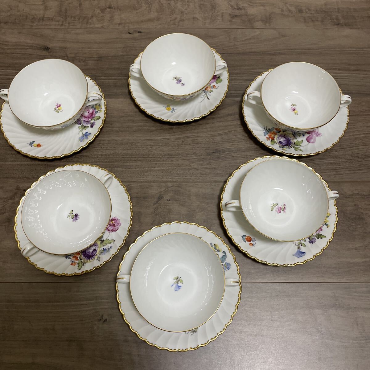 - NYMPHENBURG ニンフェンブルク スープ カップ ソーサー 金彩 花柄 洋食器 6客