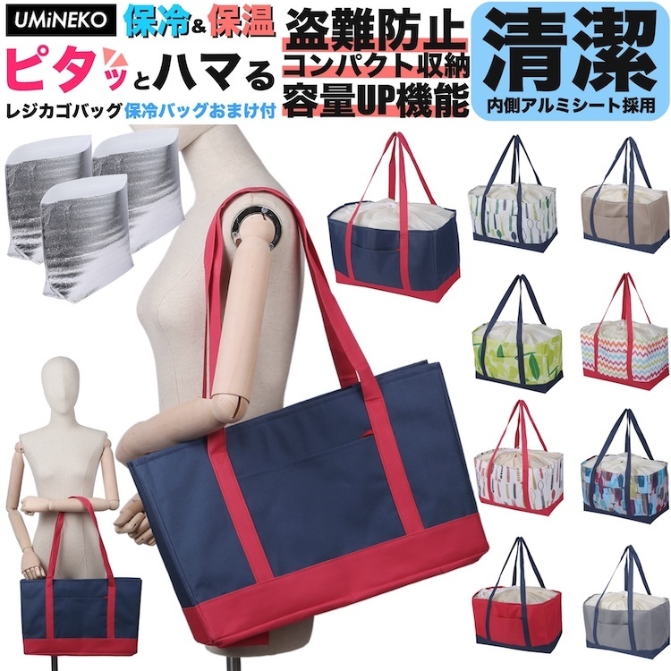 - スマートネイビー レジカゴバッグ エコバッグ 4点セット 保温 保冷バッグ付 約30L-35L 最大約37L 自立 買い物 大型 大きい 大容量