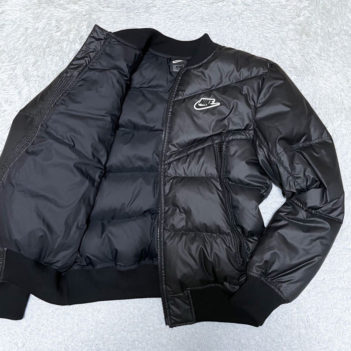 > 極美品/Lサイズ ナイキ NIKE 近年モデル スウォッシュ ロゴワッペン ダウンジャケット ボンバージャケット ブルゾン メンズ ブラック
