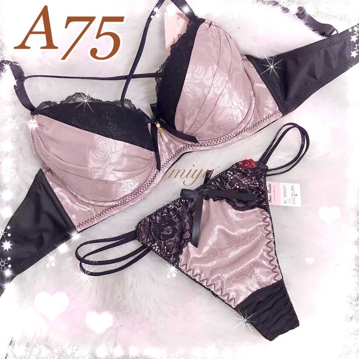 > A75M★クロスコードサテン ピンク★ブラジャー&Tバックセット★ストリング 紐 セクシー 花柄 レース Aカップ アンダー75 新品 下着★みゆ