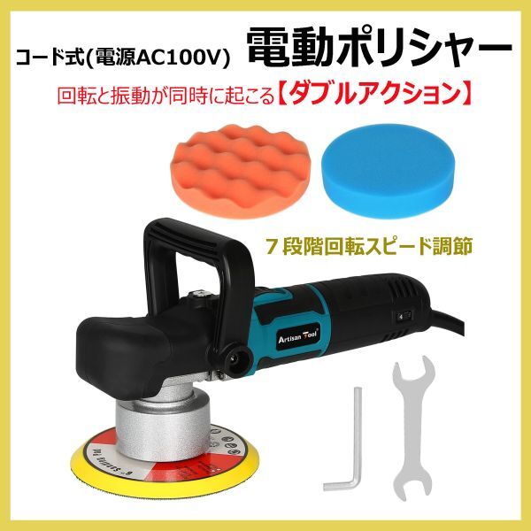 - 電動ポリシャー ACP02B コード式 AC電源100V ダブルアクション 7段階調節 2000~4600min-1 RPM 恒定起点速度 パッド径150mm(6インチ)