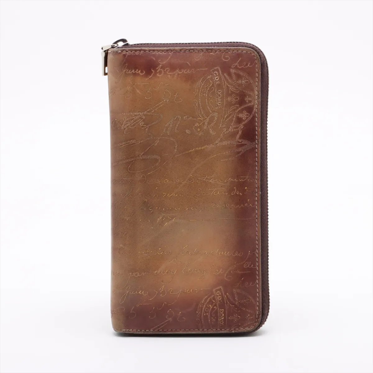 - 1円■美品■ベルルッティ■イタウバ カリグラフィ レザー 長財布 ロング ウォレット ラウンドファスナー ブラウン 茶色 メンズ EME CW60-2