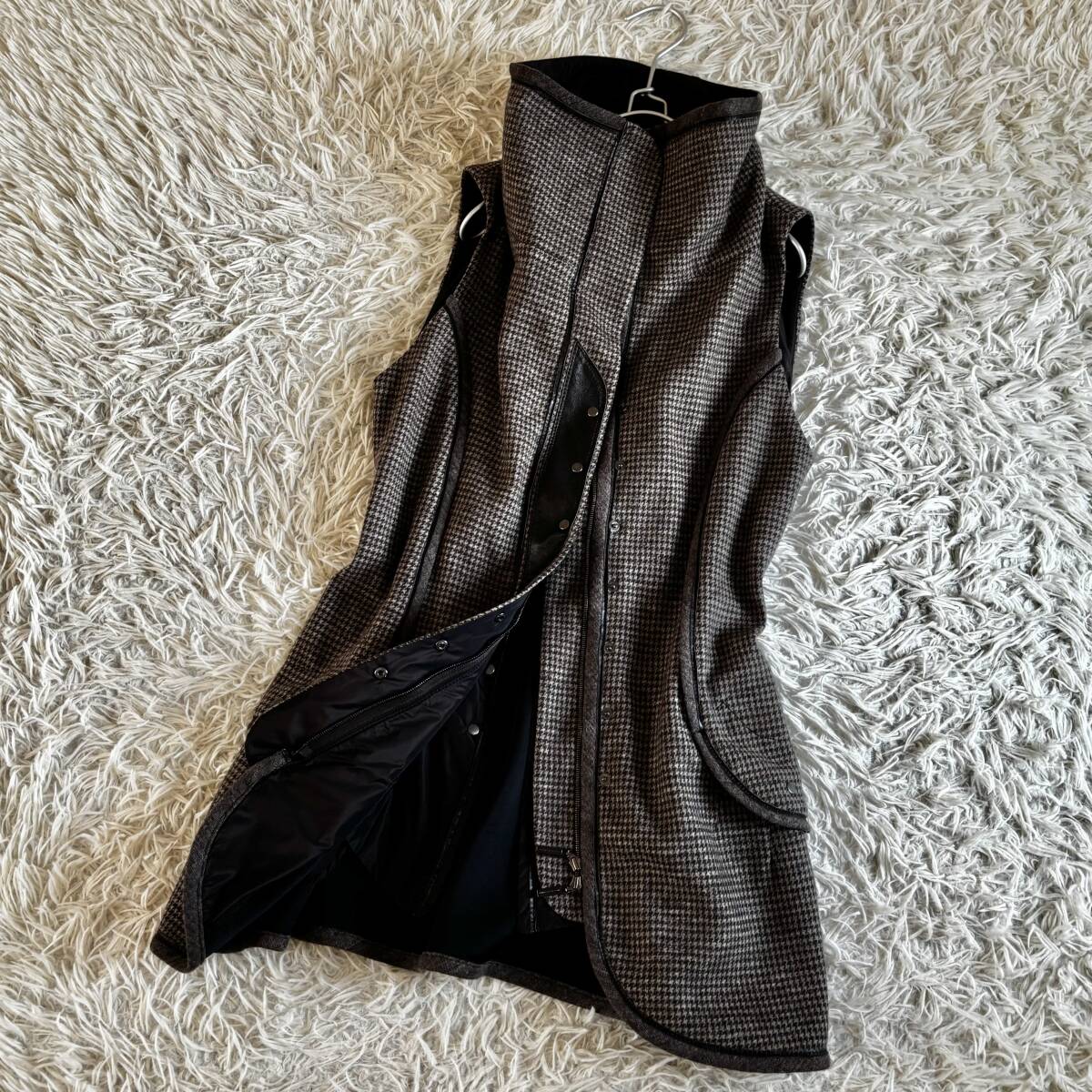 > ⑤ 極美品 ヒロココシノ HIROKO KOSHINO 襟2WAY 千鳥格子 異素材 コンビ ロング ベスト
