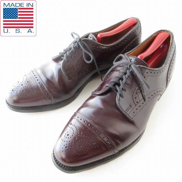 - 美品 USA製 アレンエドモンズ Sanford セミブローグ シューズ 10D 28cm バーガンディ系 アメリカ製 D152-32-0030ZV
