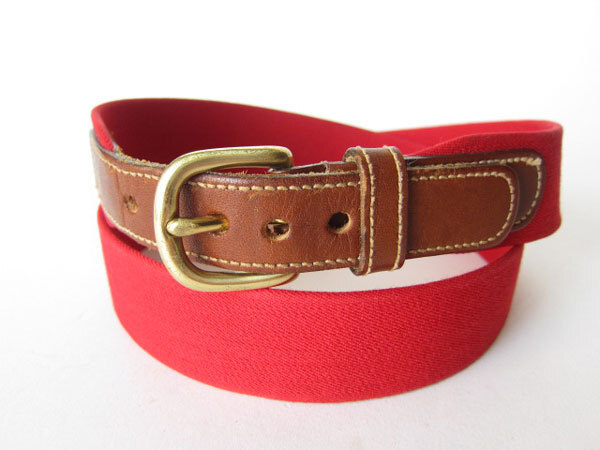 > 【DOONEY&BOURKE】ドゥーニー&バーク/伸縮素材×本革レザー/リボンベルト/赤系【34~35インチ】カジュアル/IVY/プレッピー/メンズ/D94