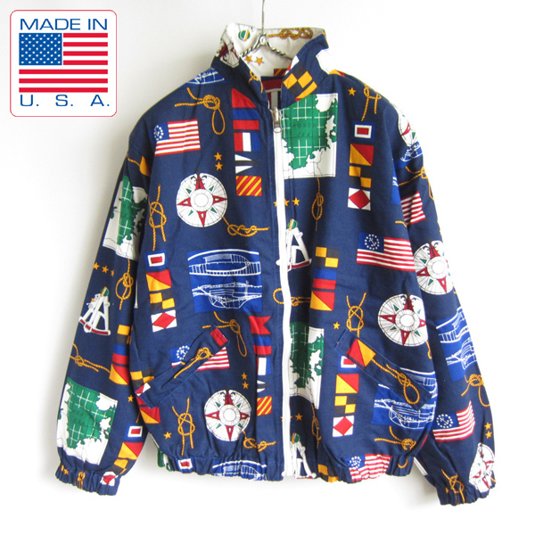 - USA製/海関連デザイン/リバーシブル/【S】コットンジャケット/紺系×白系/アメリカ製/マリン/ヨット/クルーズ/米国製/D140-17-0011ZVW