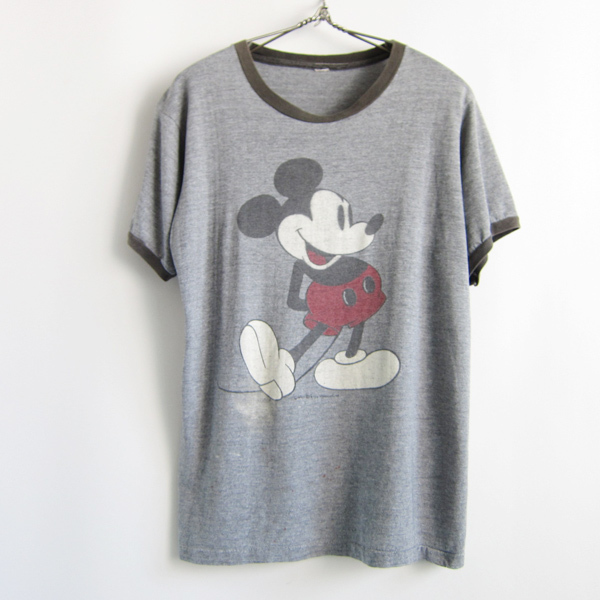> 80s オールド ミッキー リンガー 半袖 Tシャツ メンズM程度 丸首 丸胴 ミッキーマウス ディズニー ビンテージ D116-01-0002ZVW