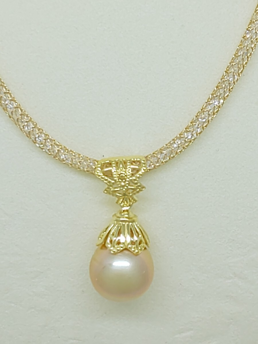 - ◆新品◆ SV ゴールデン パール ネックレス 11mm SV925/ステンレス ジルコニア 南洋白蝶真珠
