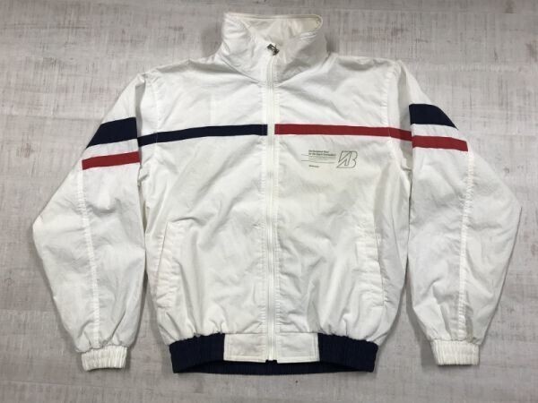 > ブリヂストン BRIDGESTONE製 レトロ 日本ロシュ テニス チーム 東京 鎌倉 スポーツ ジャケット メンズ バックプリント有 薄手 M 白