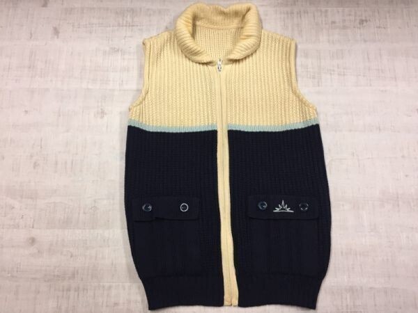 - オールド レトロ 古着 リブ編み インポート オーバーサイズ 配色切替 ジップアップ ニットベスト メンズ ベージュ/紺
