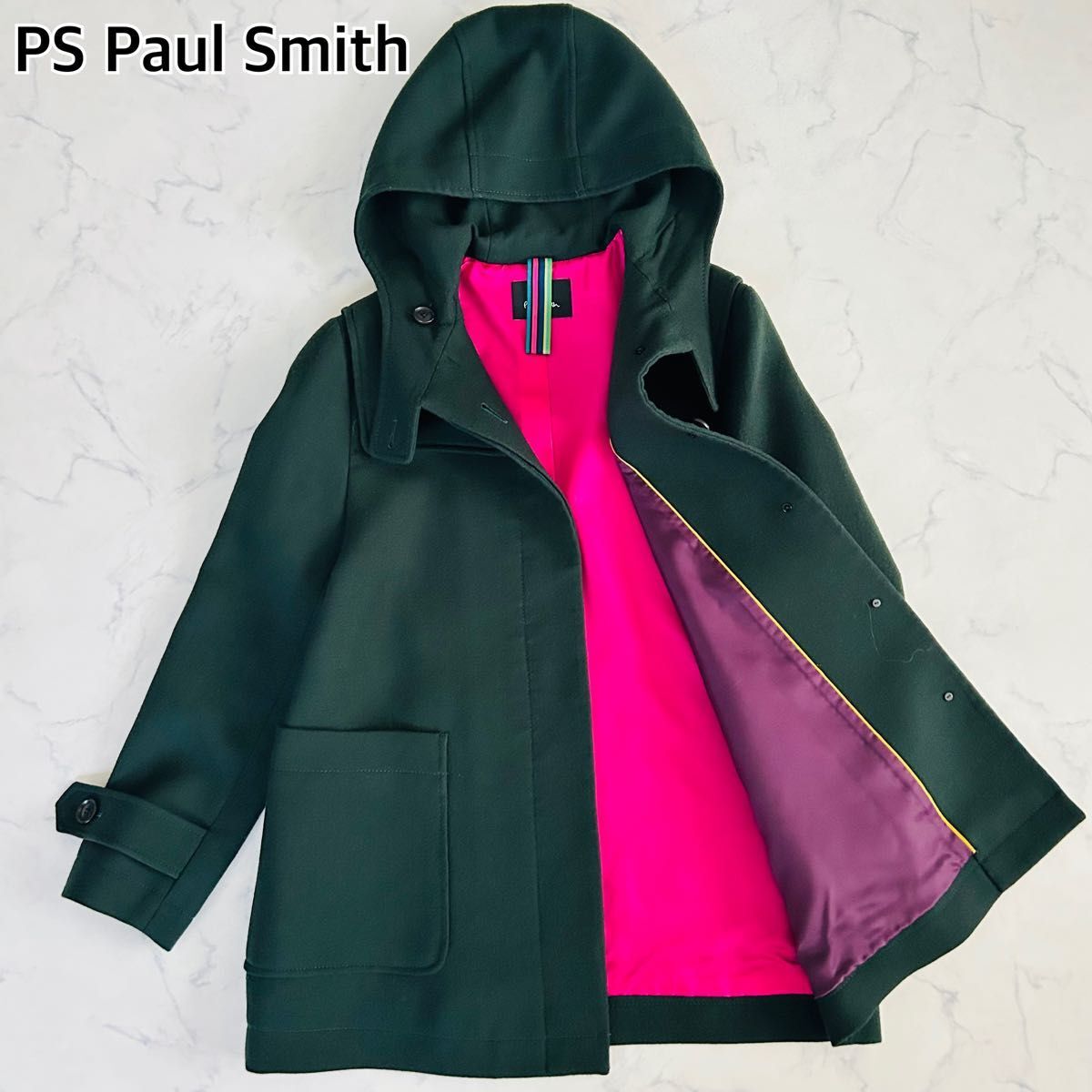 - 【現行タグ】PS Paul Smith ピーエスポールスミス フーデットコート ウールコート チェスターコート 裏地マルチカラー カーキ 40 L