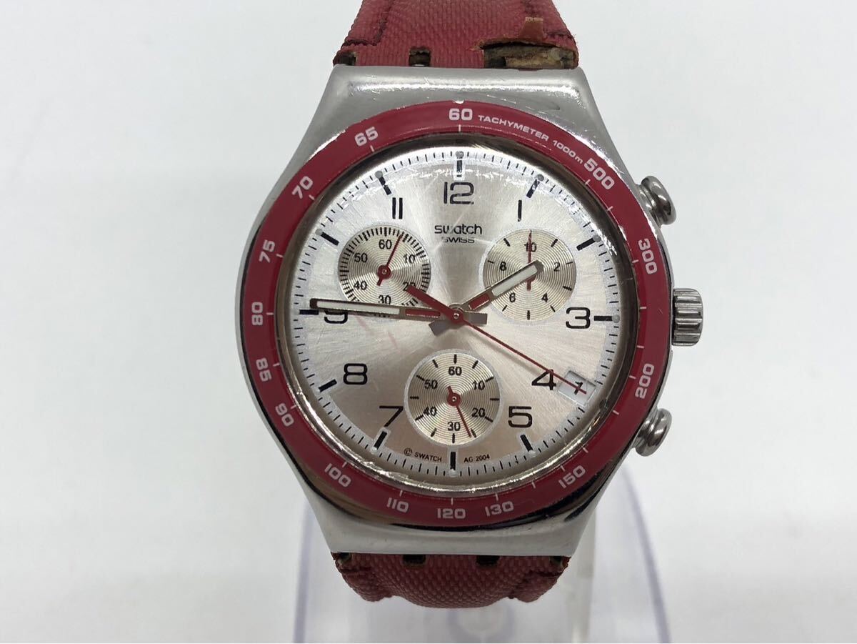 - 十74 Swatch スウォッチ クロノグラフ レッド×シルバーカラー クオーツ メンズ腕時計 IRONY アイロニー(T)