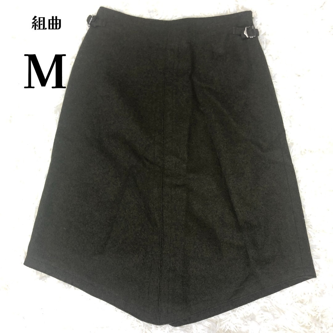 - 【美品】組曲 変形デザイン ウール 台形スカート サイズ2 M ダークブラウン