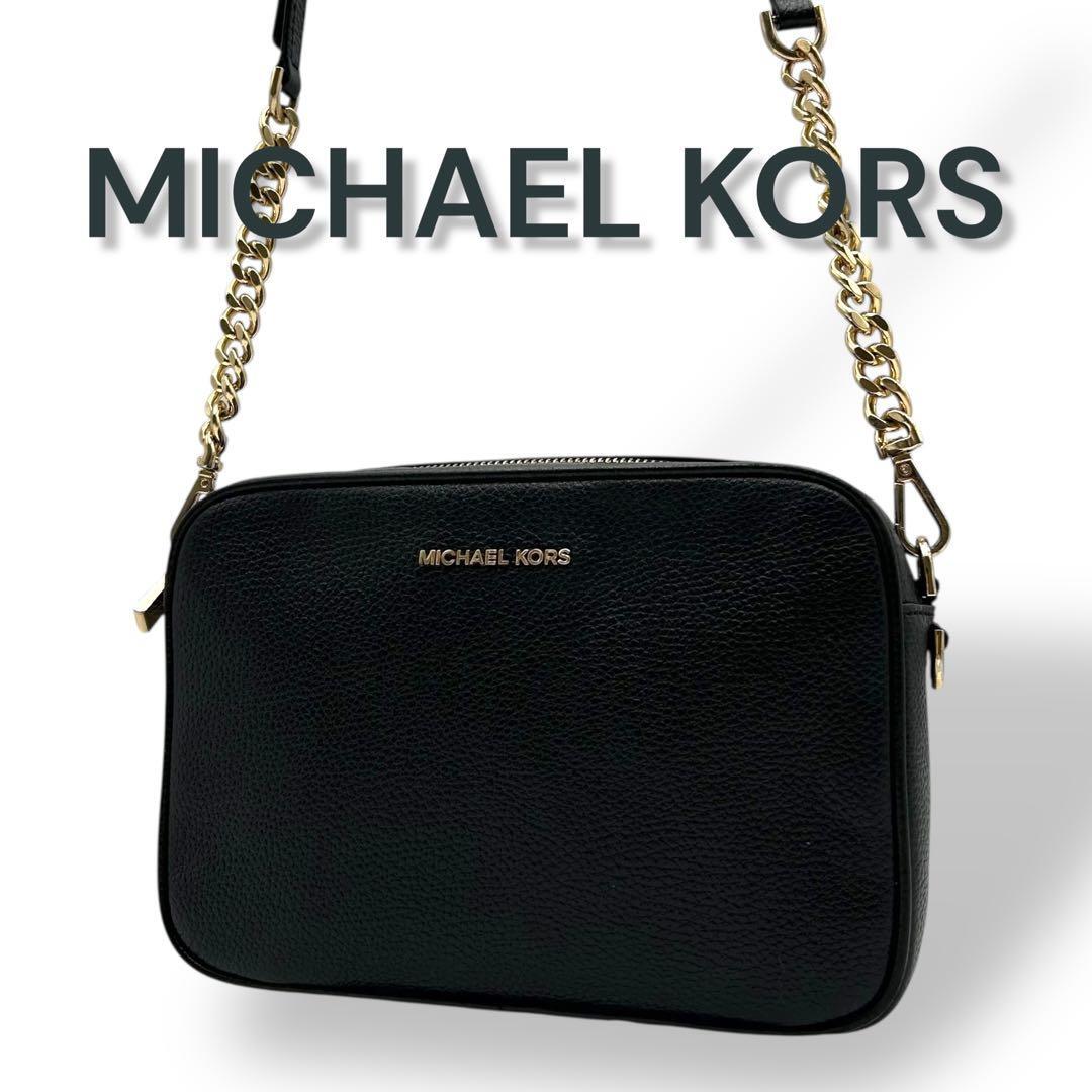 > 【美品】MICHAEL KORS マイケルコース レザー ショルダーバッグ 黒 チェーンストラップ 大人気モデル 希少モデル 極美品 ブラック