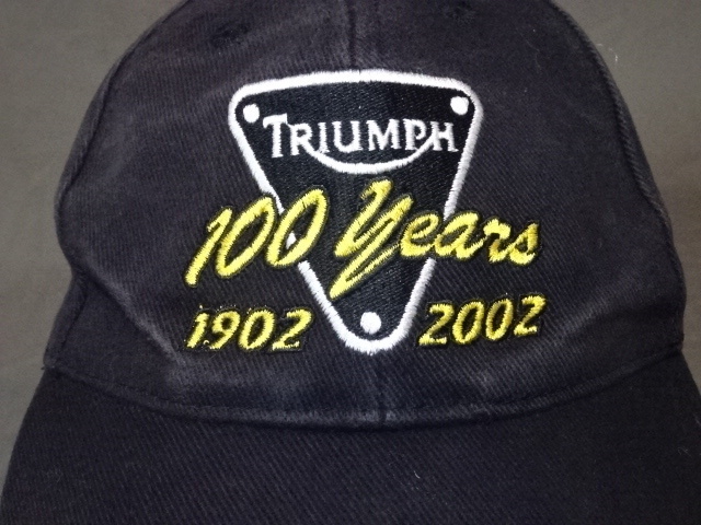 > 激レア USA購入 海外企業モノ イギリス 老舗バイクブランド【Triumph Motorcycles】【100years 1902-2002】ロゴ刺繍入り キャップ 中古品