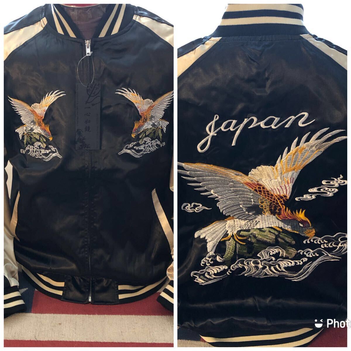 - タグ付き新品 未使用 XL サテン 和柄 イーグル スカジャン ブラック