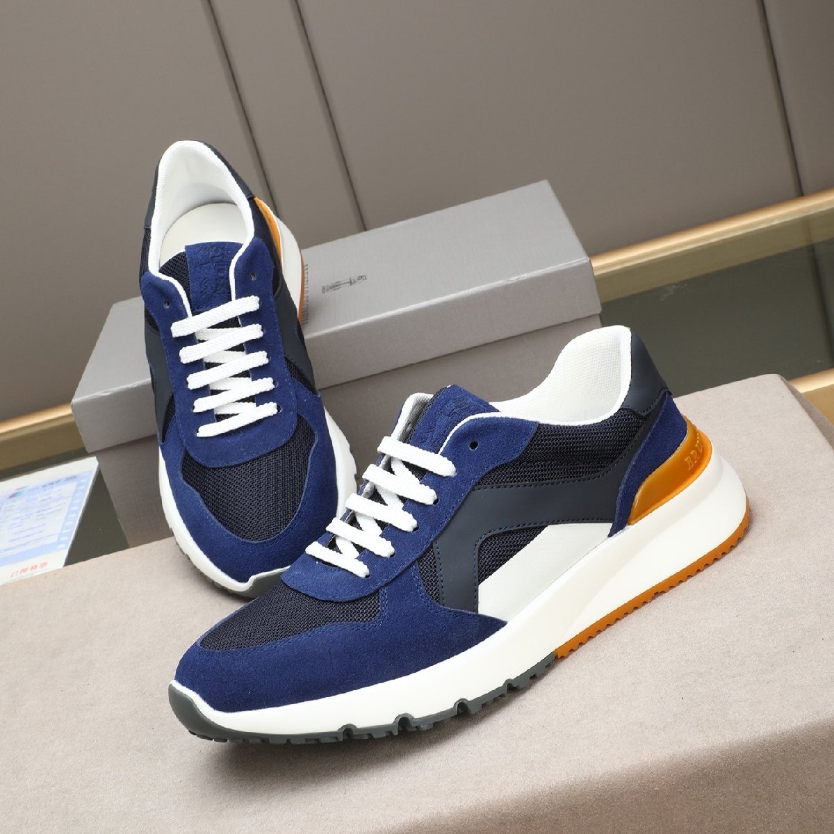 > ネイビー27.0cm ★送料無料★ブルネロクチネ★メンズ スニーカー, カーフレザー, メッシュ素材, スポーツカジュアル, ラグジュア
