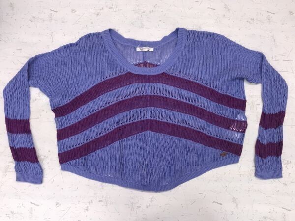 > ロキシー ROXY サーフ Y2K ギャル セレブ ストリート 古着 ボーダー シースルー 鍵編み コットンニット トップス レディース 綿100% L 青