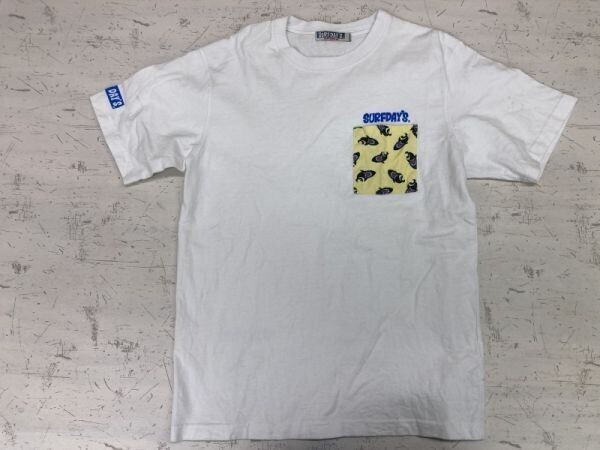 > サーフデイズ SURF DAY'S レトロ ストリート 古着 キャラクター 総柄・胸ポケット ポケT 半袖Tシャツ カットソー メンズ M 白