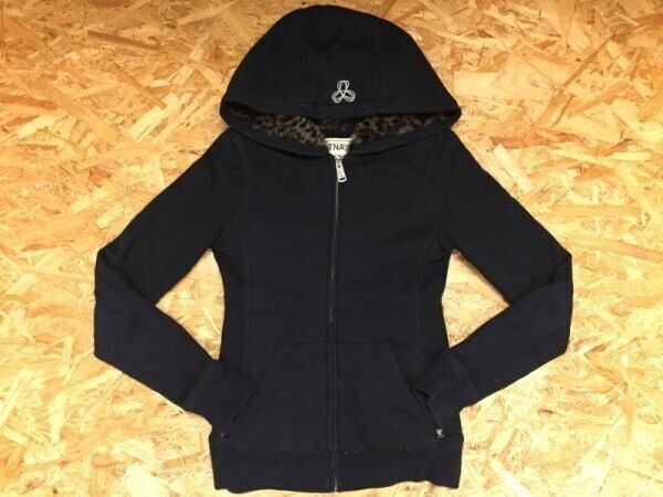 > TNA カナダ製 裏地ボア レオパード サイドリブ 防寒 長袖スウェットパーカー カットソー レディース コットン混合 XS 黒