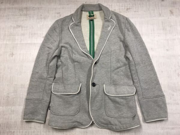 - html エイチティーエムエル ストリート 00s 裏原宿 古着 パイピング スウェット テーラードジャケット 2つボタン メンズ L グレー