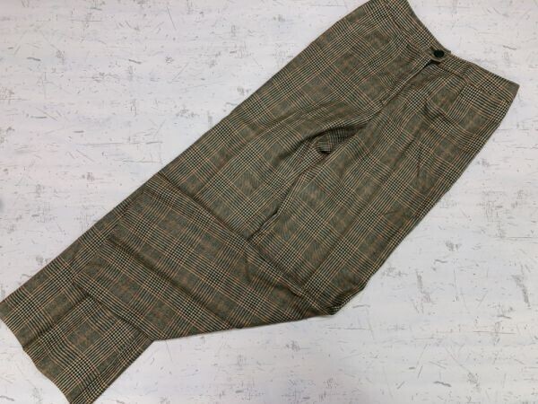 - オールド 昭和 国産レトロ ブーツカット ワイド スラックス グレンチェック パンツ ボトムス レディース 日本製 ウール100% キャメル系