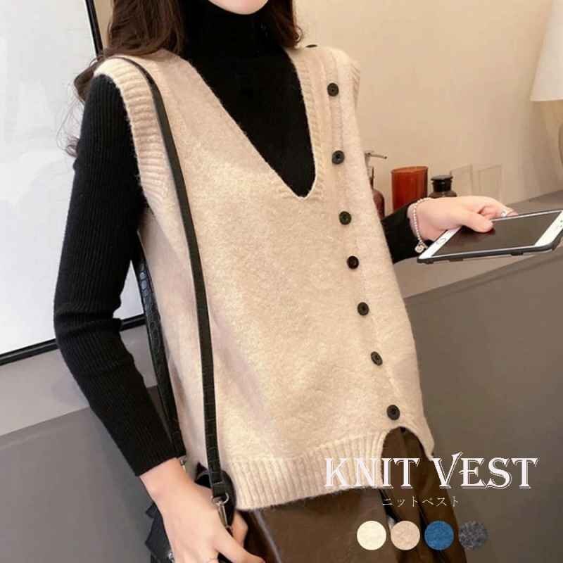 - ニットベスト レディース ニットトップス ノースリーブ スリット入り フリー ベージュ