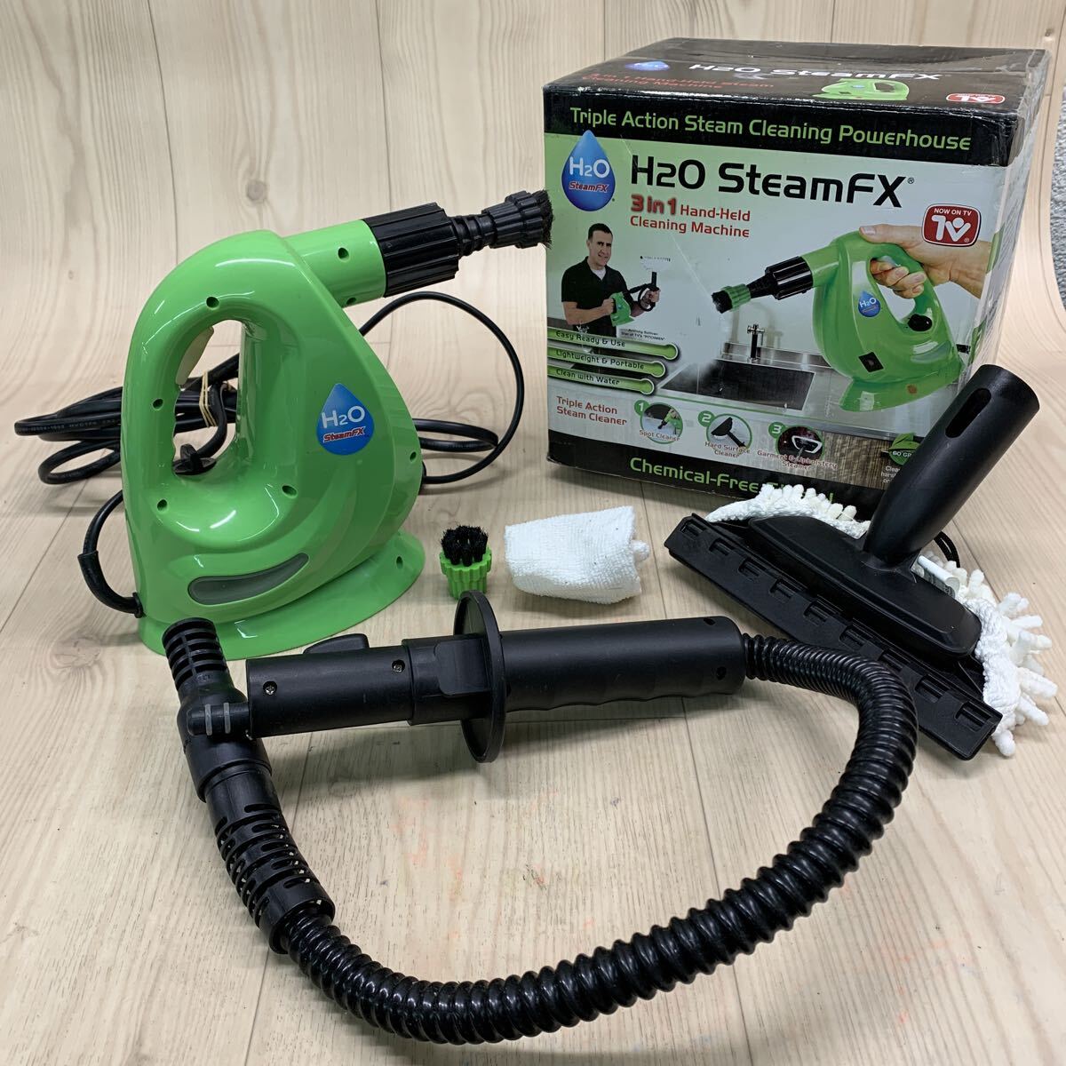 > N918 SD-251024-2045 H2OスチームFX スチームクリーナー 高圧スチーム ハンディタイプ 約110℃の高温 グリーン 掃除 通電確認済み