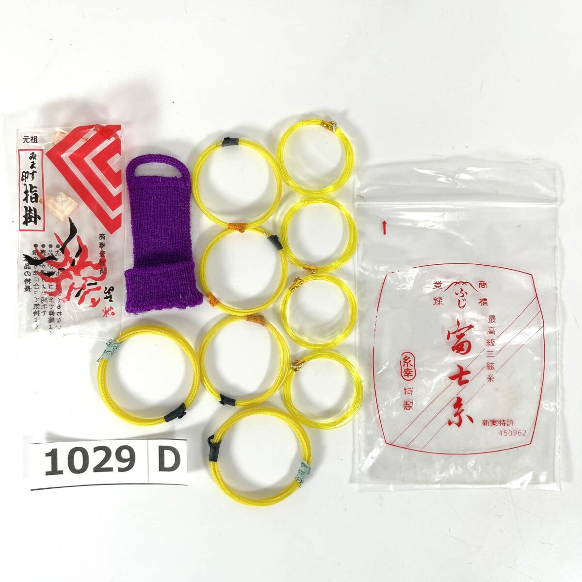 > (志)【おまとめ】三味線 小物 元祖 みます印 指掛 紫 1点 最高級三味線糸 富士糸 糸幸 特製 1の糸 2の糸 3の糸 計9点 弦 (o)1029D
