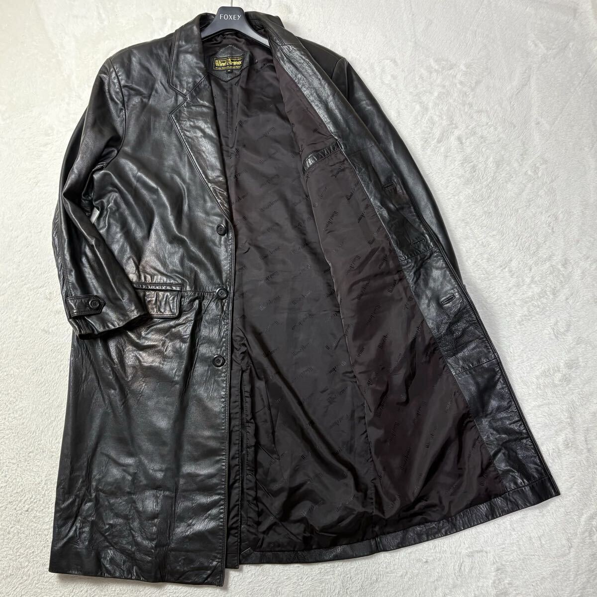 - 【羊革 着丈106cm】wind armor ウィンドアーマー レザーコート チェスターコート レザージャケット ロング丈 本革 ラムレザー ブラック 黒