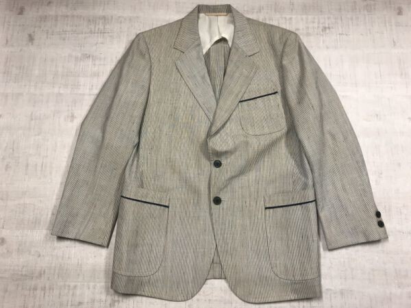 - FELICE TABASSO ファブリック使用 オールド古着 絣 カスリ コードレーン ストライプ テーラードジャケット メンズ 2つボタン 170 グレー系