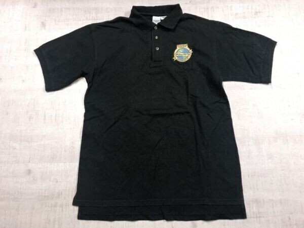 > USA製 COTTON DELUXE CASUALS製 富士フイルム FUJIFILM GREENWOOD グリーンウッド 90s 企業物 古着 10周年 半袖ポロシャツ メンズ L 黒