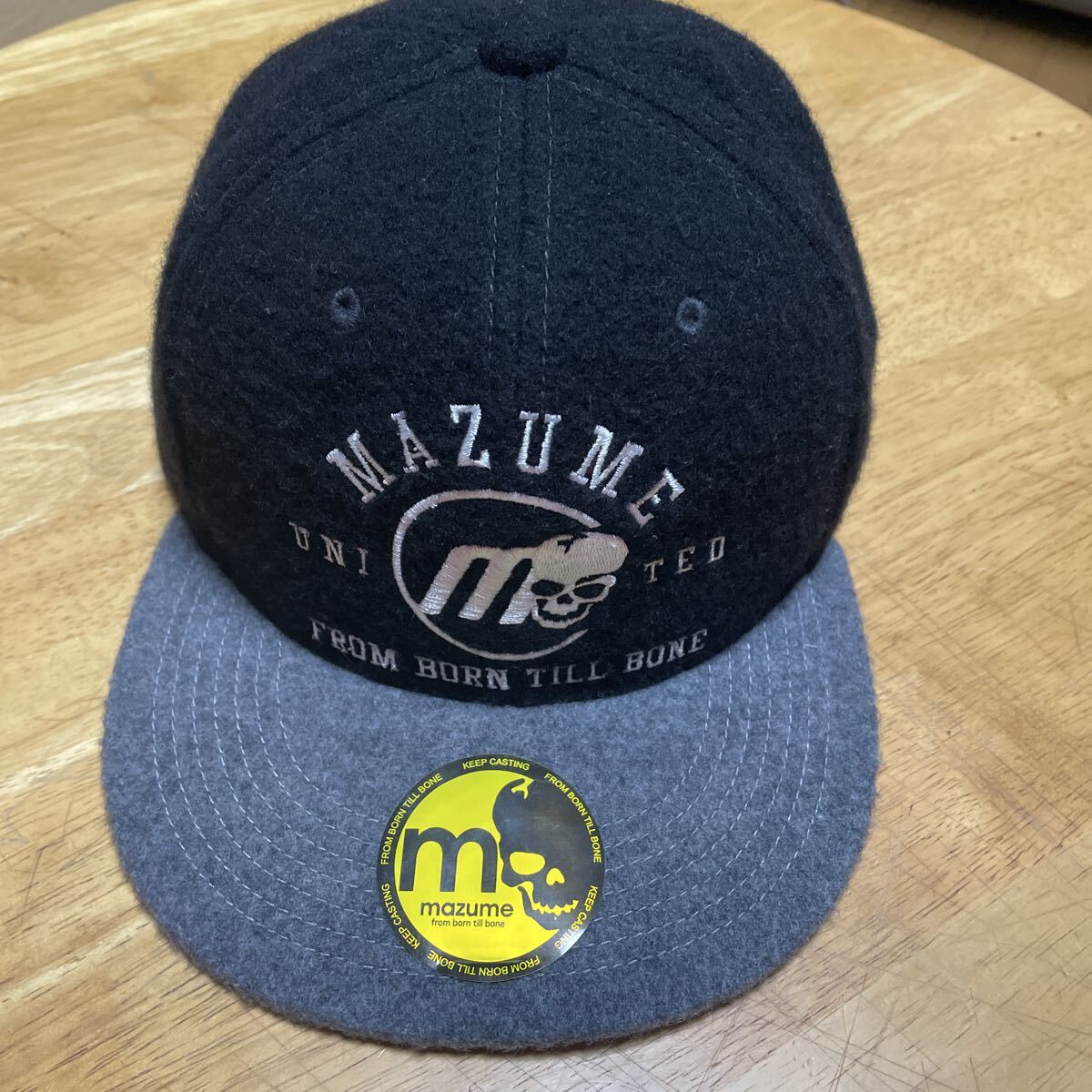 - MAZUME 冬用 フラットキャップ ウール素材 黒×グレー フリーサイズ 刺繍入り