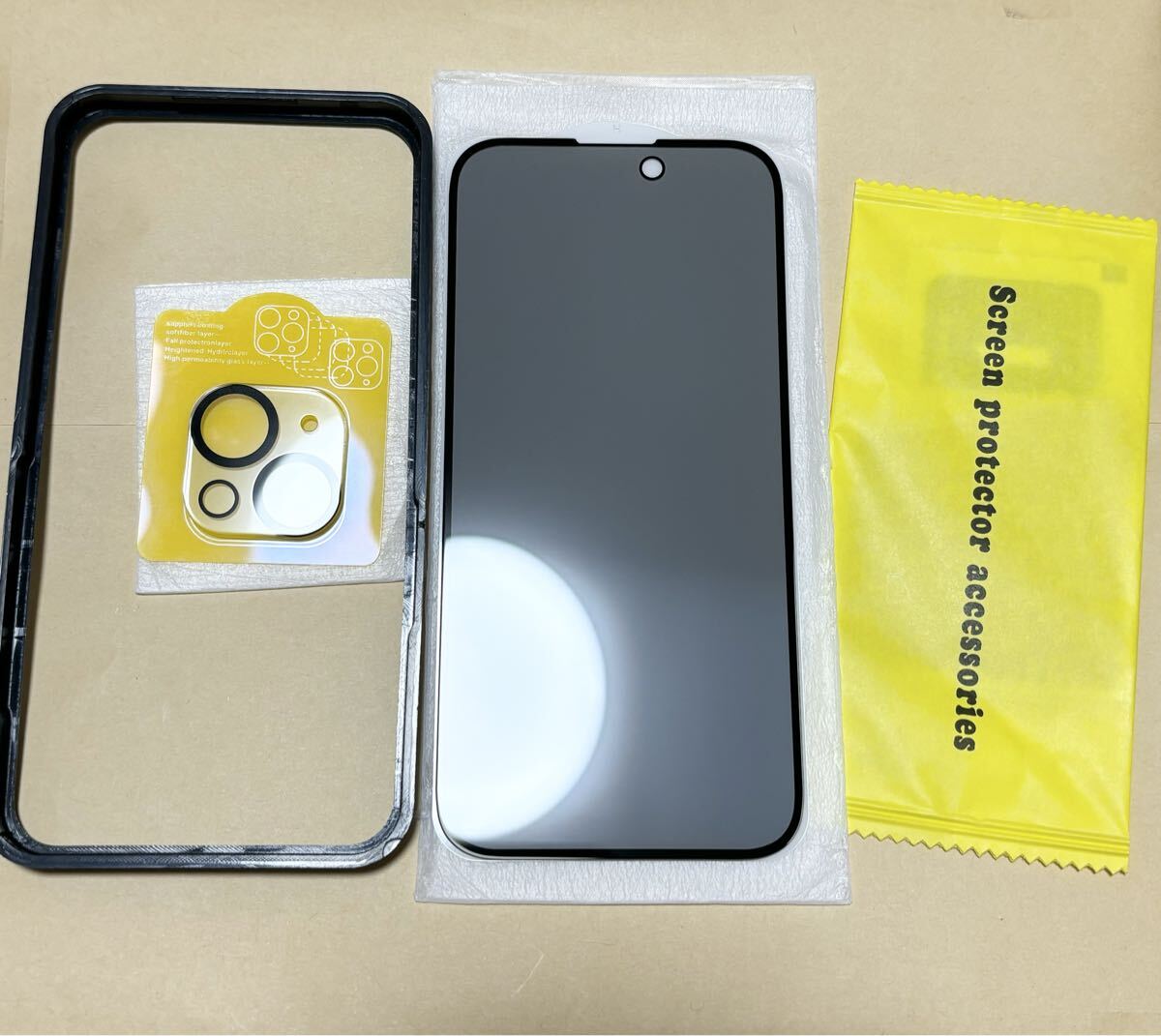 - 新品未使用 iPhone15 9H 強化ガラスフィルム 覗き見防止 カメラ保護フィルム 液晶保護 カメラレンズ保護カバー ガイド枠付き